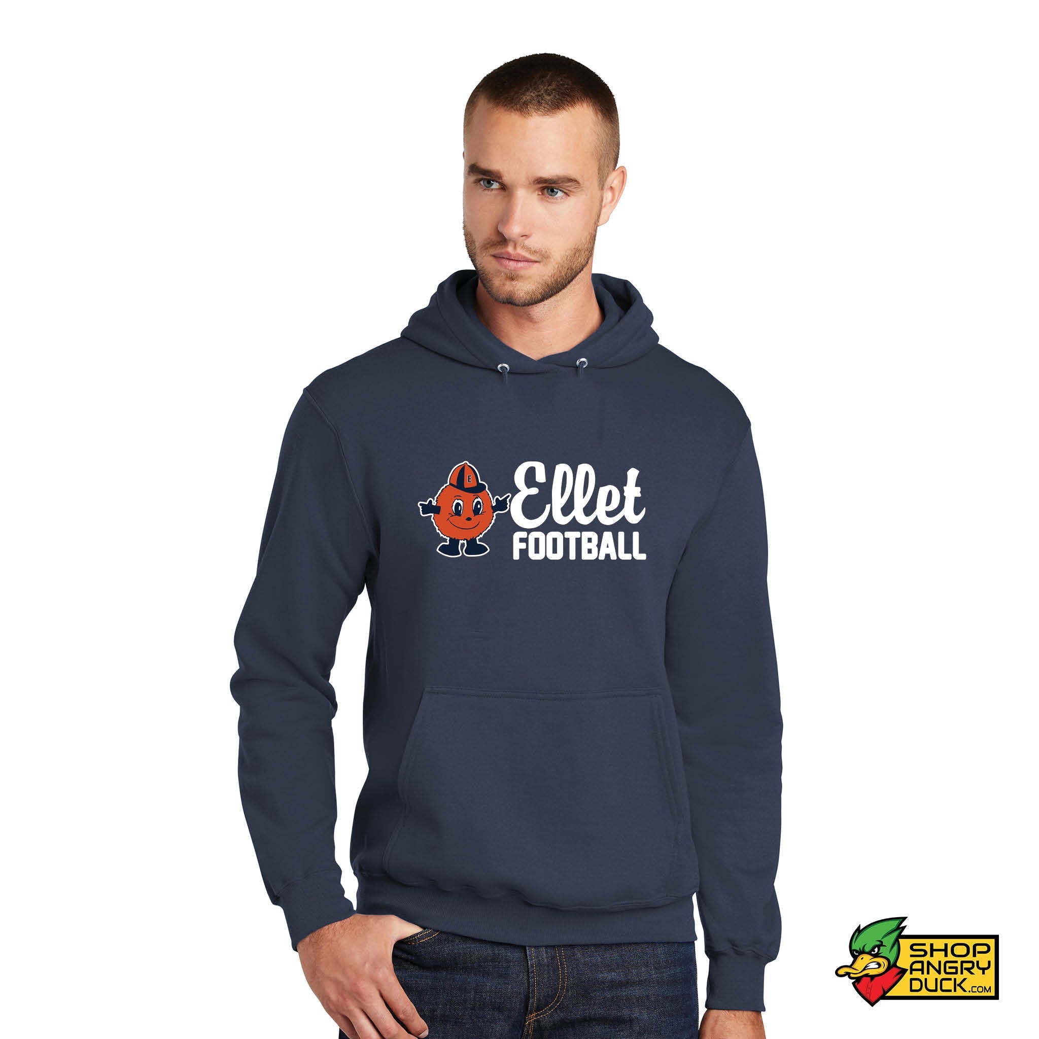 Introducing the Ellet High School Hoodie! This cozy sweatshirt is perfect for those chilly days and nights. Made from a 7.8-ounce, 50/50 cotton/poly fleece, this hoodie is super soft and comfortable. It also features an air jet yarn for added softness. The removable tag means you can wear it with ease and comfort. Plus, the trendy design is perfect for showing your support for your favorite team. So don't wait any longer, order your Ellet High School Hoodie today!