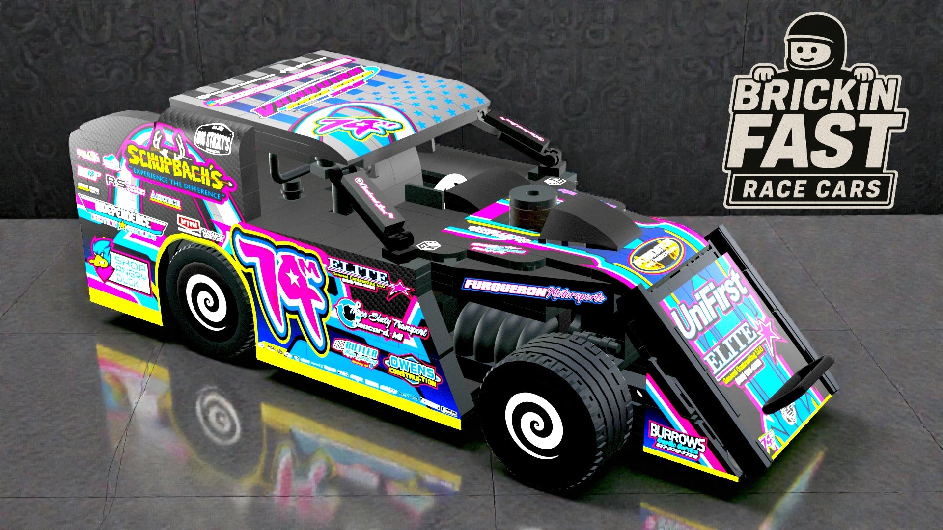 Bring dirt-track racing to your shelf with the BrickinFast Modified – Manix Furqueron 2025 Gateway — a 494-brick build packed with bold graphics, precision parts, and a true race-inspired look. Perfect for racers, collectors, and fans who want more than just a toy.